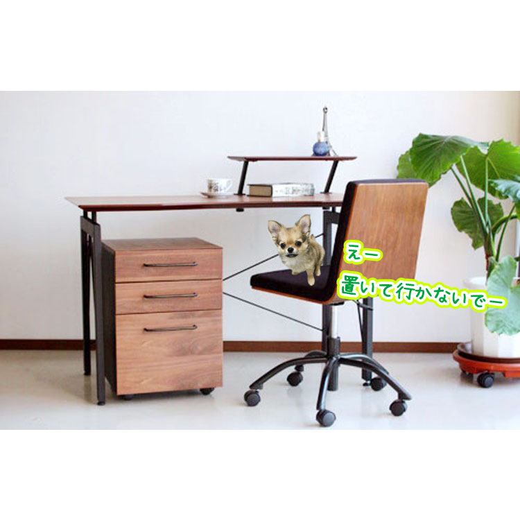 幅120cm・天然木ウォールナット製パソコンデスク(ブラウン色/可動棚付き)