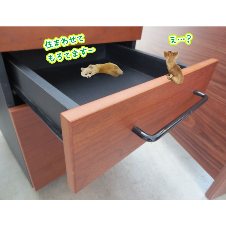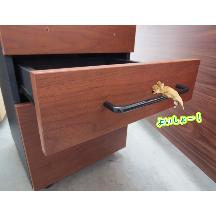 引き出しは細々したものからA4ファイルまで入る引き出し3杯をご用意していますー。