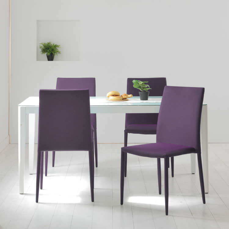 スタッキング機能付き布製ダイニングチェアは、スリムなデザインだからお部屋に圧迫感を与えないところも魅力的でしゅ。