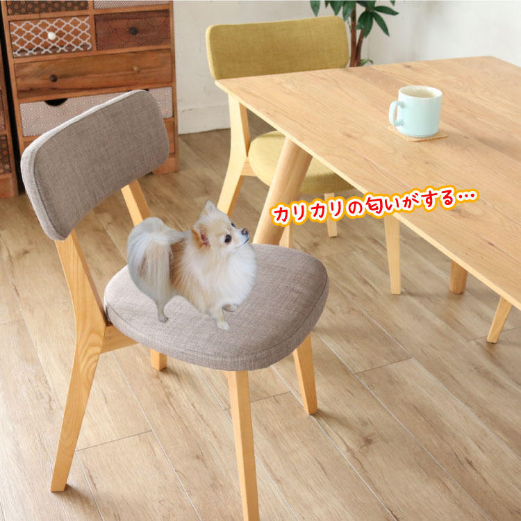 CH-3810 かわいいファブリック製のダイニングチェア|高級素材の天然木タモ製/ナチュラル色