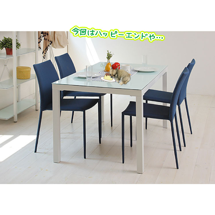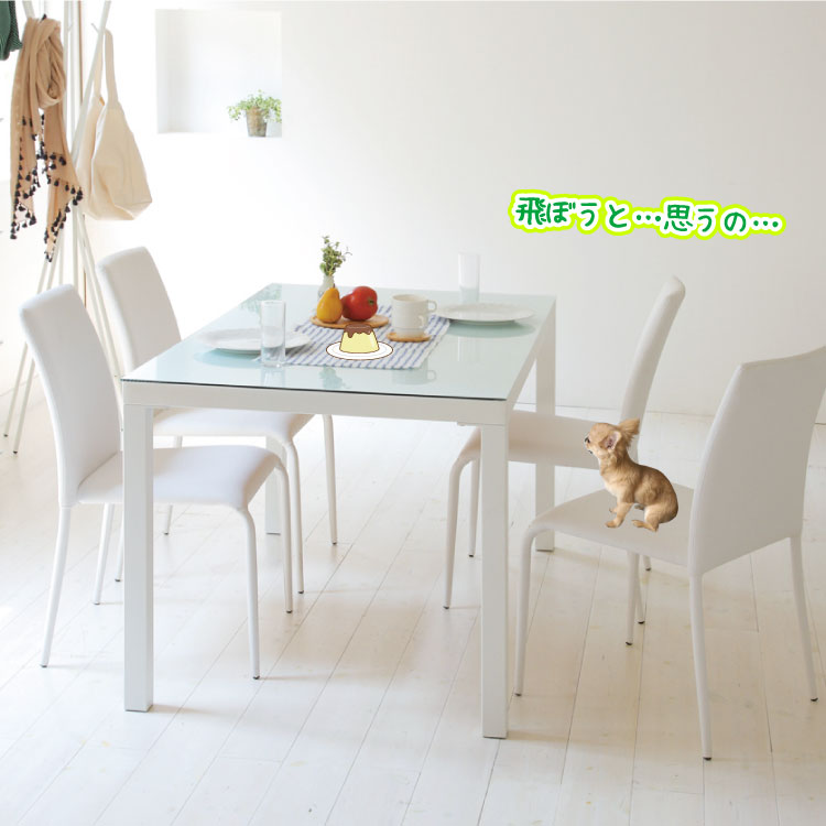 幅135cm・白いガラス製のダイニングテーブル