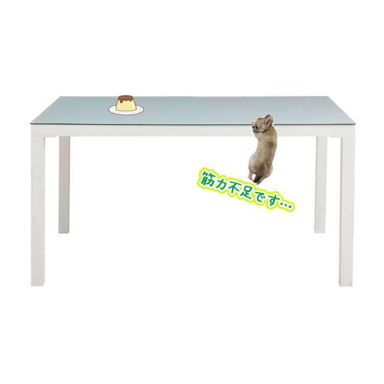 幅135cm・白いガラス製のダイニングテーブル|ホワイト