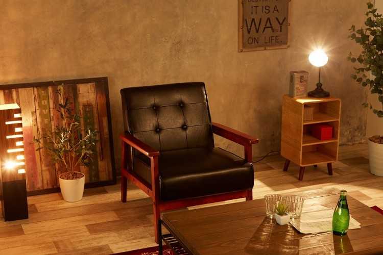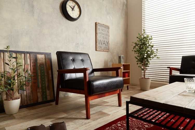 木肘1人掛けソファー黒ブラックでお部屋をおしゃれに