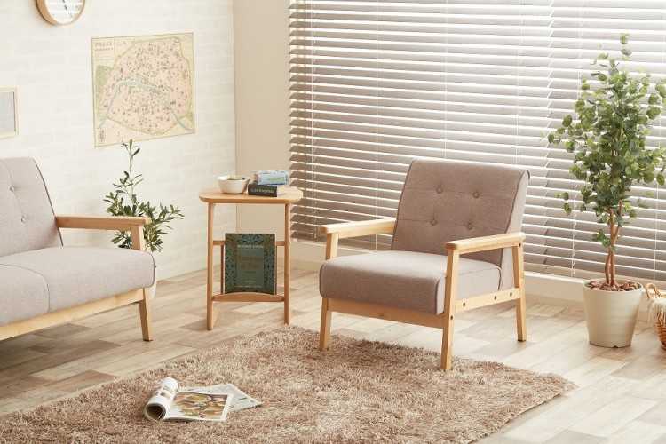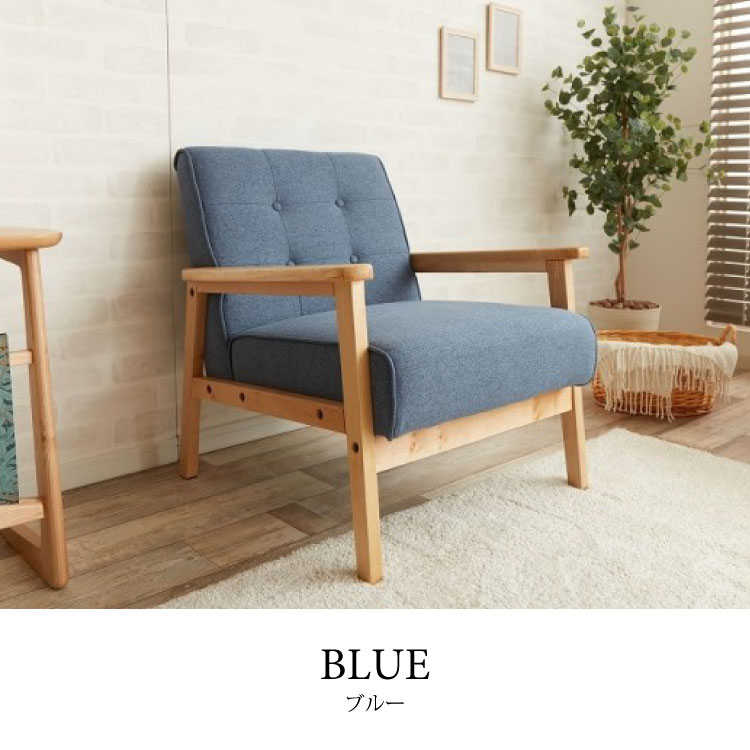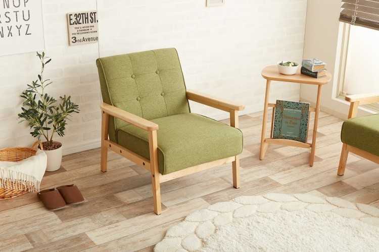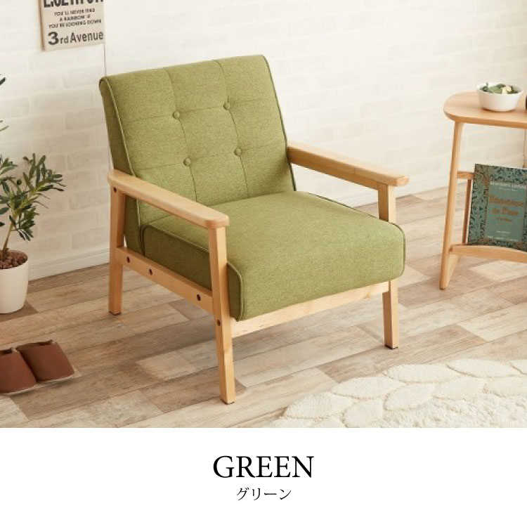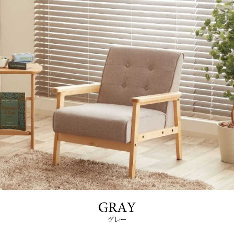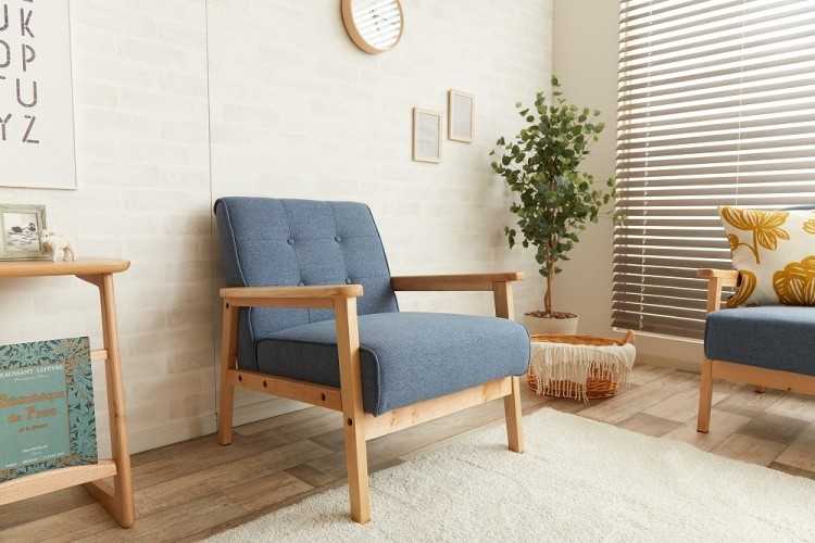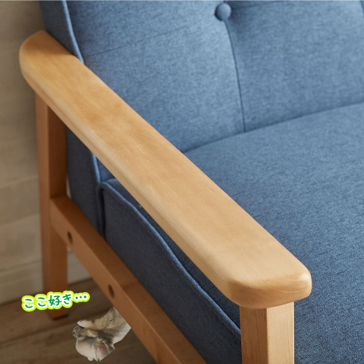 ふんわり優しくて可愛い癒し系ながら、フレームに天然木を使用した布製木肘1人掛けソファー。