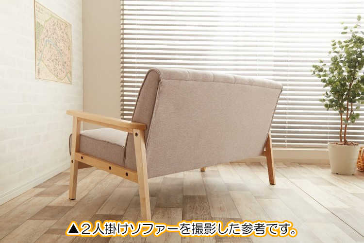 幅64cm・木肘デザインの布製1人掛けソファー|ナチュラル色の天然木製フレームが素敵