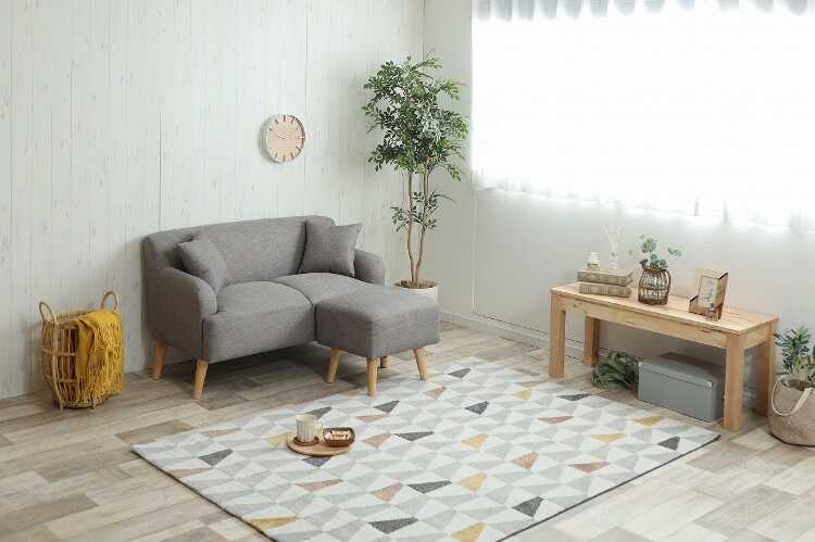 どんなお部屋にも馴染む、グレーの2人掛けソファーオットマン付き