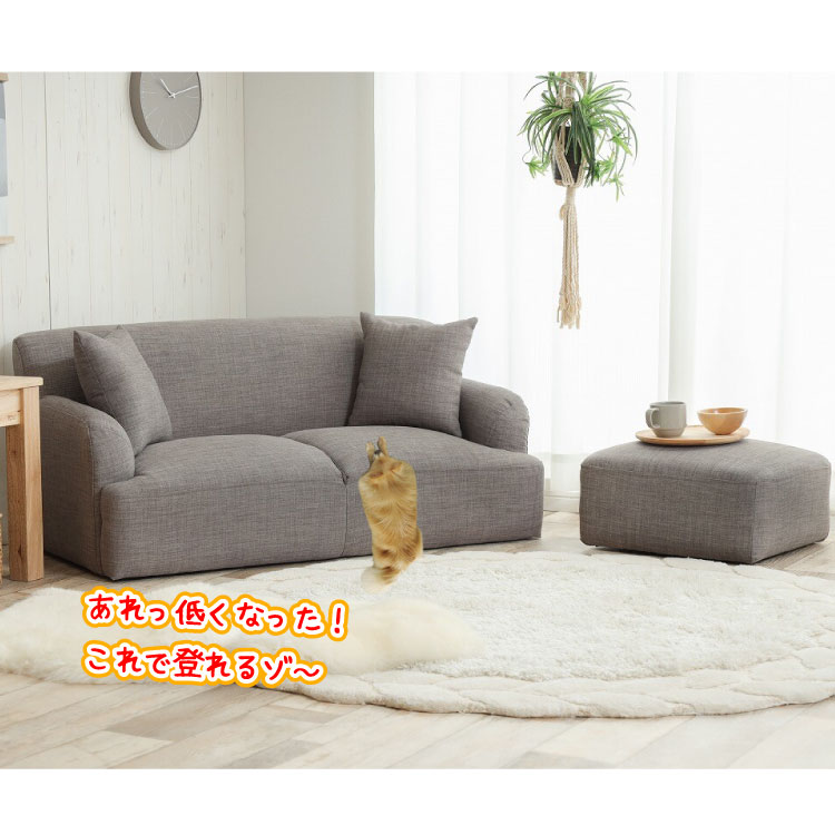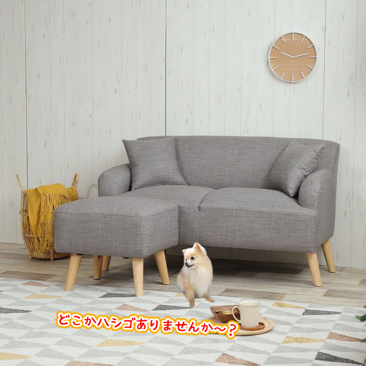 オットマン付きグレーの2人掛けソファーはミニクッションが2つも付属してましゅ!
