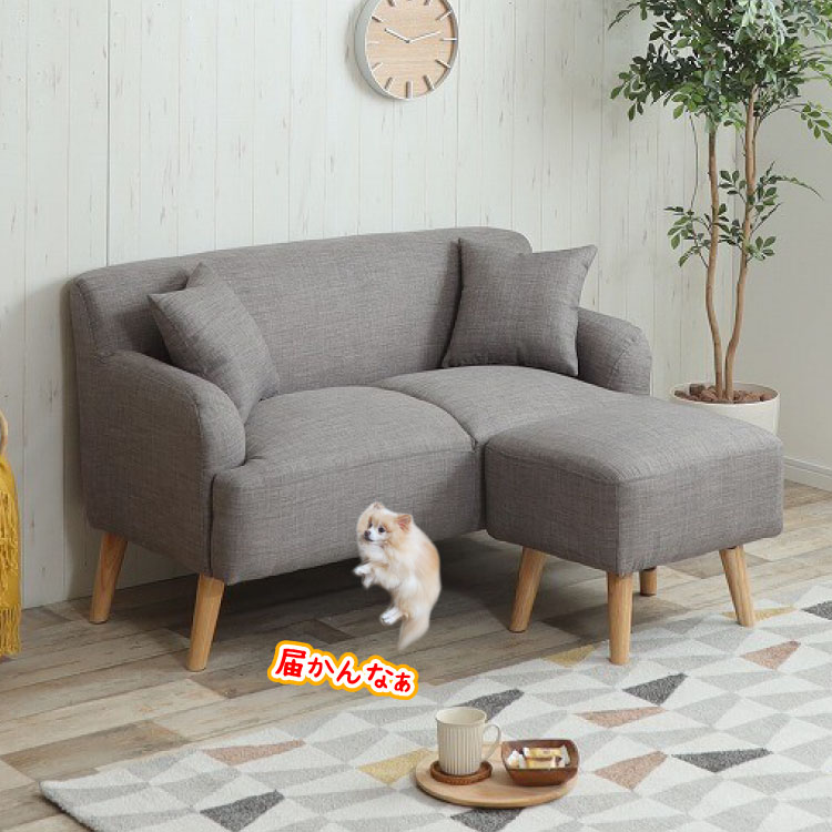 オットマン付きの2人掛けソファー!カラーはグレー
