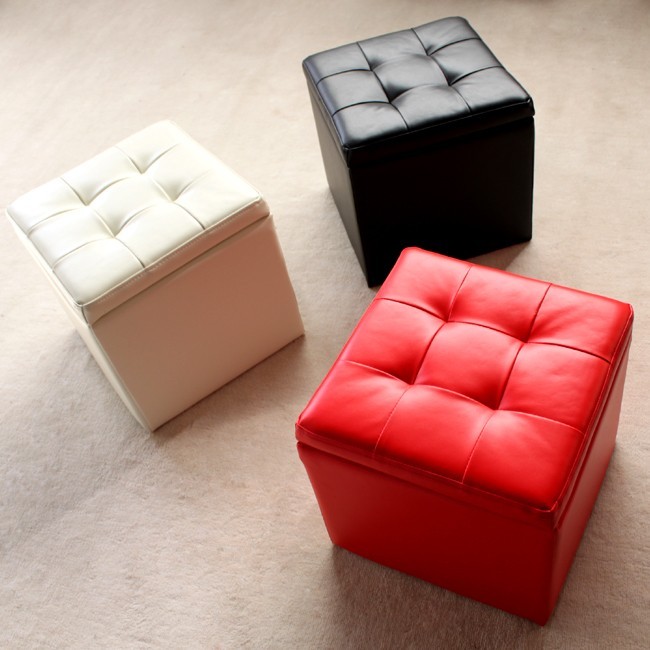 愛らしい収納付きレザー製スツール