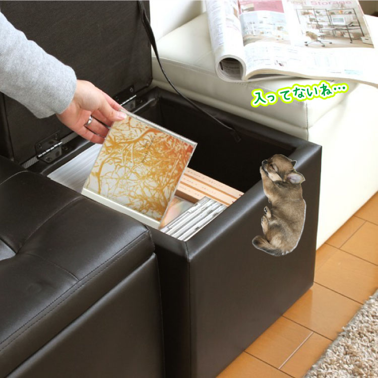 幅33cm・収納付きレザー製スツール|コロンとかわいい正方形/完成品/カラー3色【販売終了】