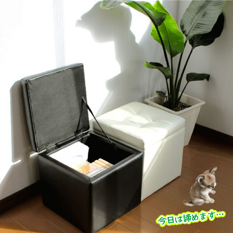 SF-2061 幅33cm・収納付きレザー製スツール|コロンとかわいい正方形/完成品/カラー3色