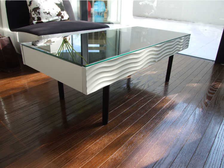 このテーブルがお家にあったら超かっこいい、黒ガラス製リビングテーブル。
