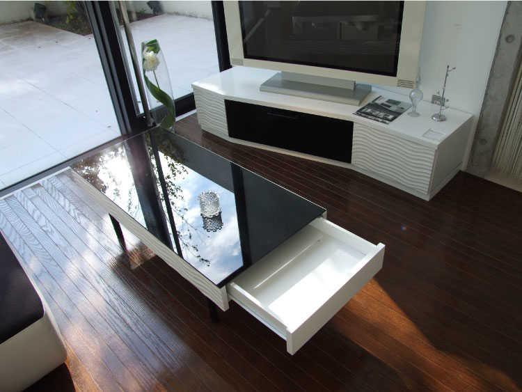 日本製の黒ガラス製リビングテーブルがクオリティ高め