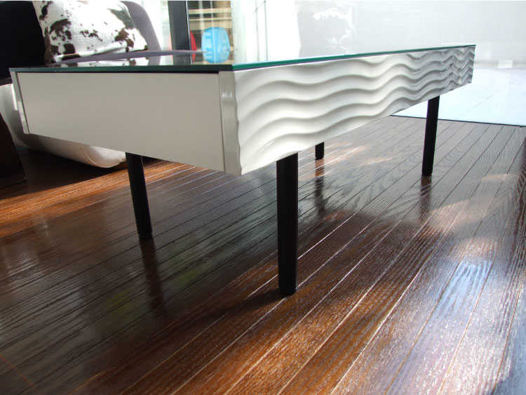 本日仕入れてきたのは、黒色のガラス製リビングテーブル。