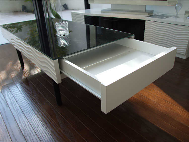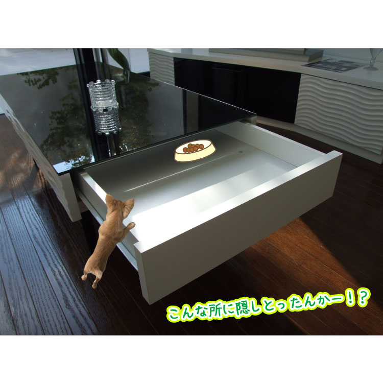 TA-1384 幅105cm・超かっこいい黒ガラス製リビングテーブル|国産/引出し収納付き/完成品