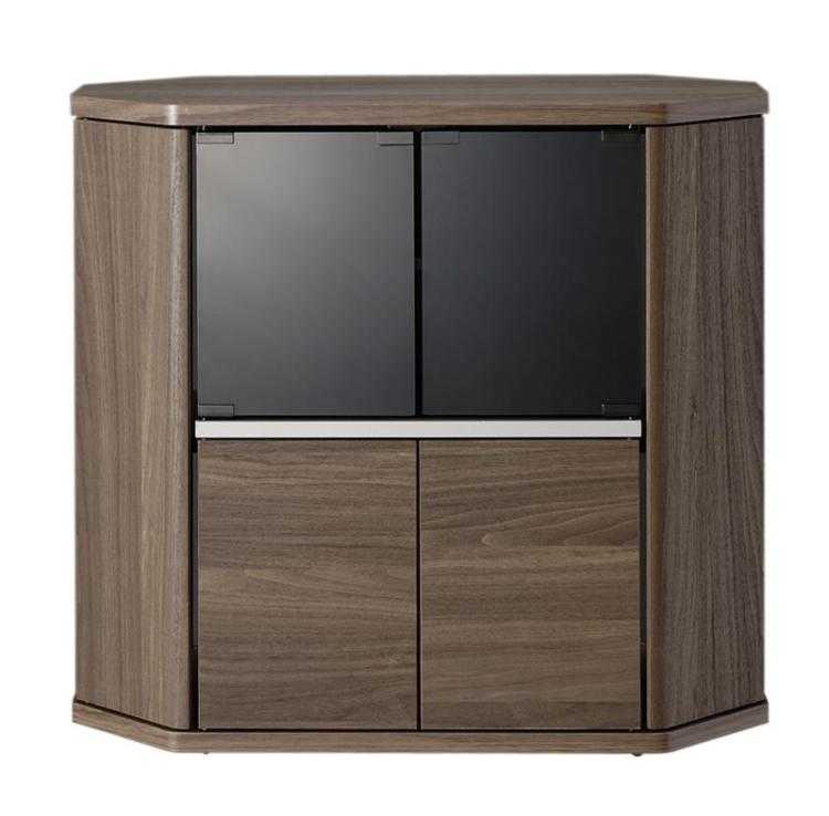 幅80cm・ハイタイプのコーナーテレビ台(高さ74cm/ブラウン/キャスター付き)