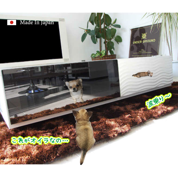 幅120cm・白光沢ウェーブデザインのテレビボード(日本製/完成品)